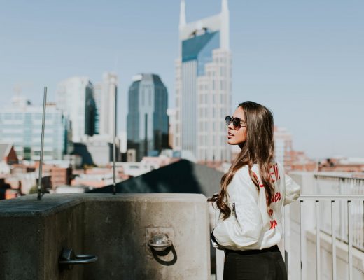 Young Woman With Sunglasses Leaning On The Wall