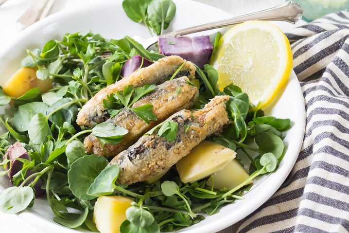 Nicely Served Fish With Potatoes, Lemons And Greens